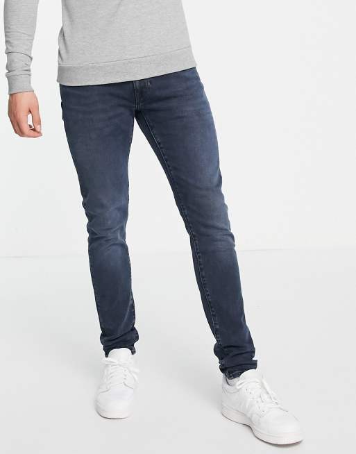 Levi's – Mörkmarinblå överfärgade jeans med avsmalnande passform