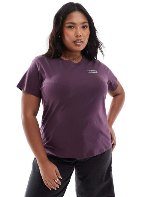 Levi's Plus – Perfect – Lila t-shirt med bågformad, glansig, prickig logga