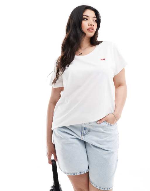 Levi's Plus – Perfect – Vit t-shirt med liten fladdermuslogga