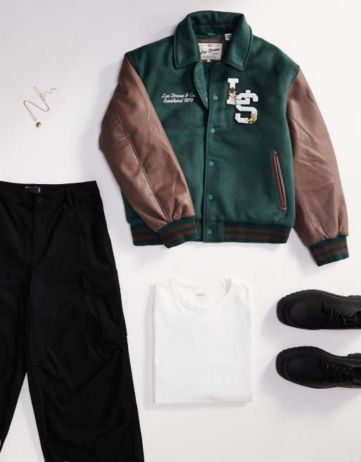 Levi's – Rowan – Grön collegejacka i ull och läder