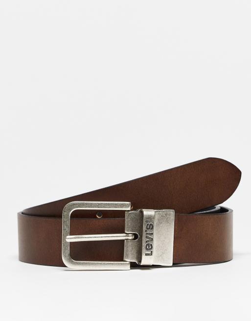 Levi's – Svart och brunt läderskärp i vändbar design med matt spänne med logga