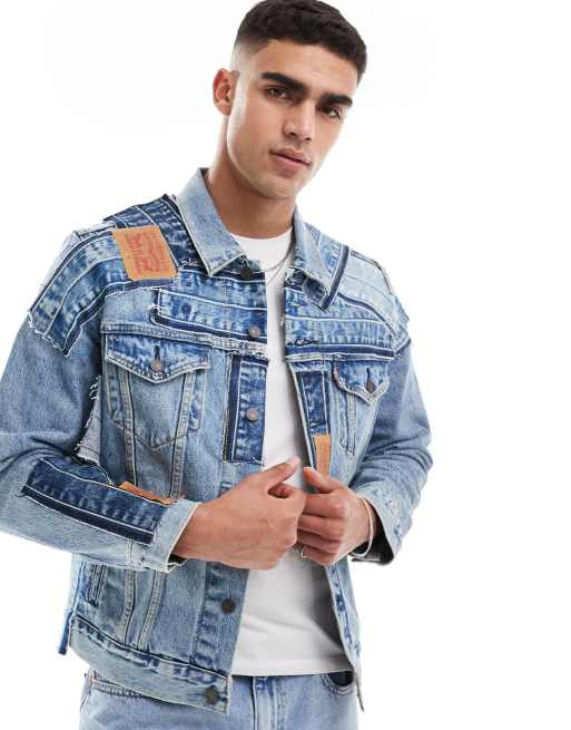 Levi's – The Trucker – Mellanblå jeansjacka med sliten design med lappar