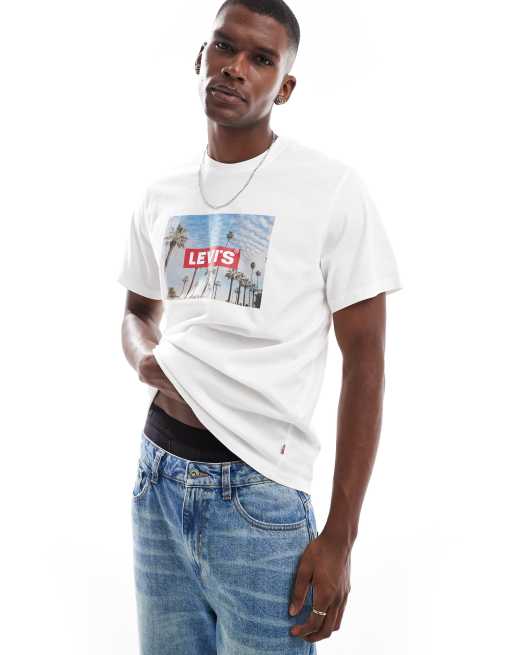 Levi's – Vit, avslappnad t-shirt med fototryck och fyrkantig logga