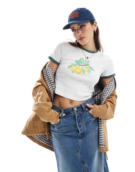Levi's – Vit t-shirt med kantrand och citrontryck