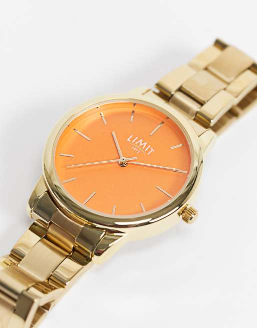 Limit – Guldfärgad armbandsklocka med orange urtavla