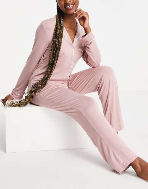 Lindex – Blekrosa pyjamas i viskos och jersey med platt krage