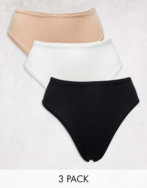 Lindex – Carin – Vita, beige och svarta stringtrosor i bomull med hög midja, 3-pack