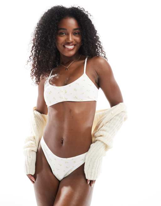 Lindex – Gult, mjukt underklädesset med blommigt mönster