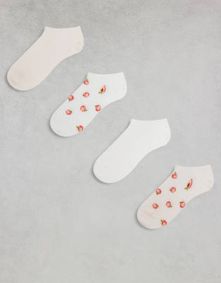 Lindex – Rosa strumpor med persikomotiv och uddkant, 4-pack
