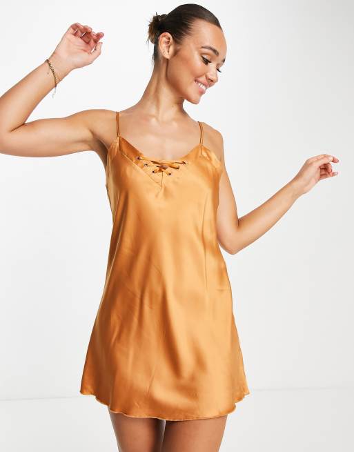 Lingadore – Hasselbrunt nattlinne i slipmodell av satin