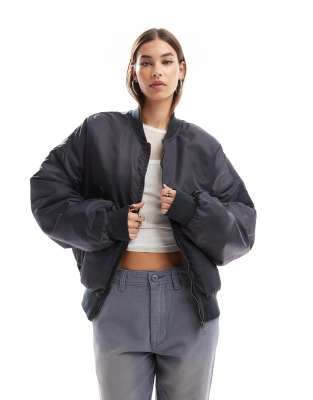 Lioness – Mörkgrå, puffig bomberjacka i oversize med dragkedja