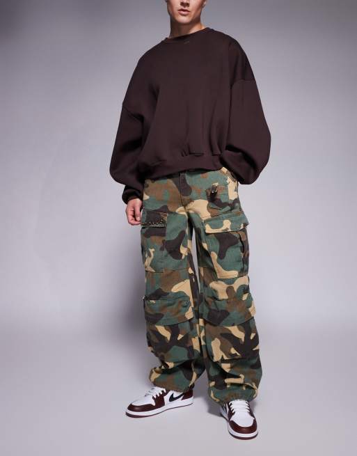 Liquor N Poker – Flerfärgade, kamouflagemönstrade cargobyxor i baggystil