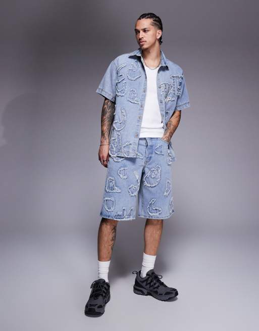 Liquor N Poker – Ljusblå, tvättade jeansjorts med slitna detaljer