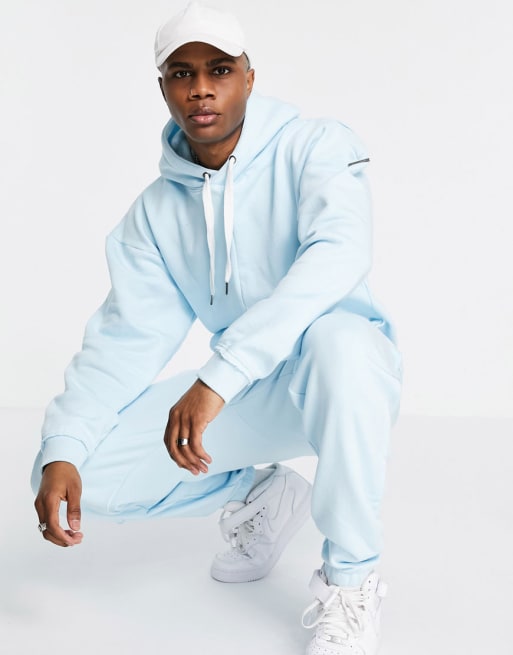 Liquor N Poker – Ljusblått set i sweatshirttyg med delat mönster