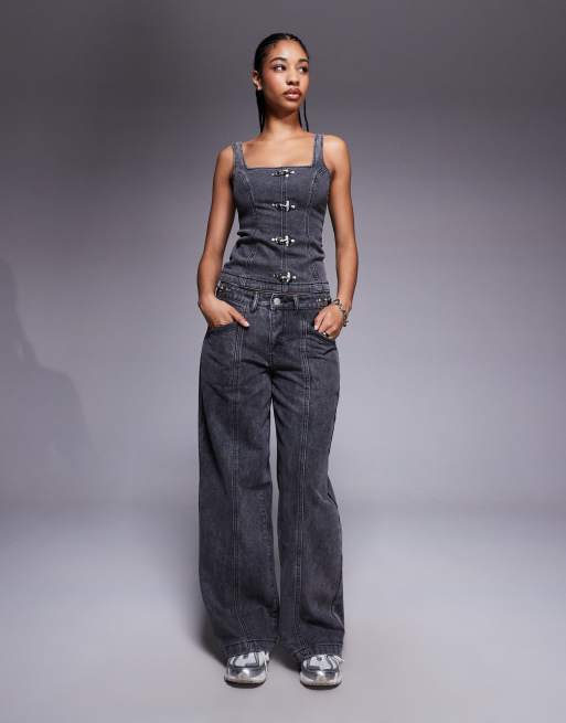 Liquor N Poker – Svarta, tvättade, baggy jeans med spänne, del av set