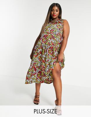 Liquorish Curve – Djurmönstrad, smockad midiklänning