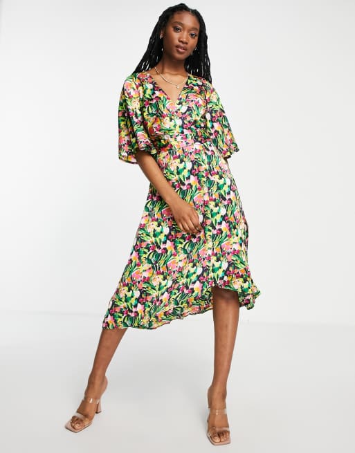 Liquorish – Blommig omlottklänning i midilängd med kimonoärm