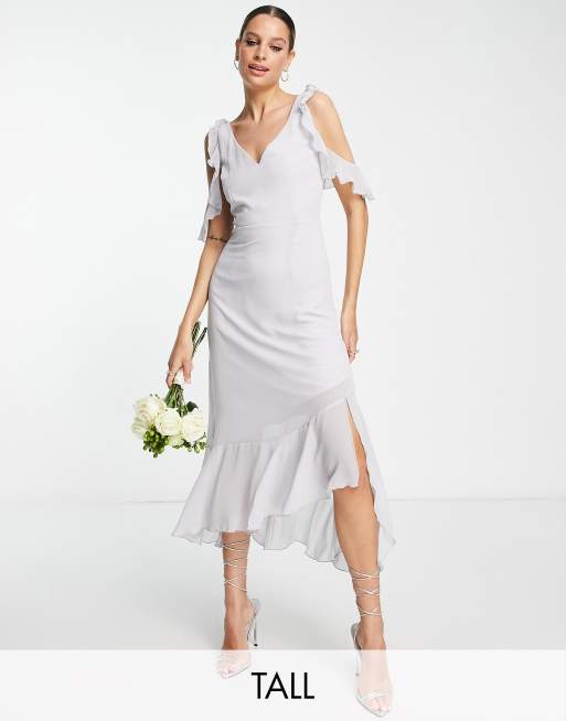Little Mistress Tall – Brudtärnor – Ljusgrå midiklänning med cold shoulder-design