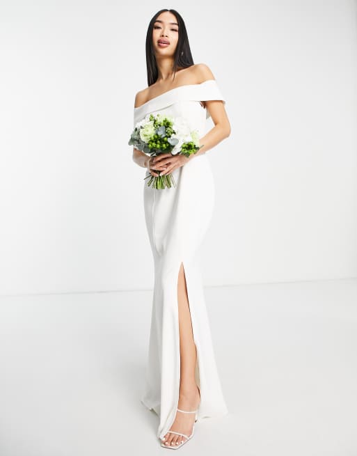 Little Mistress – För bruden – Benvit maxiklänning i off shoulder-modell