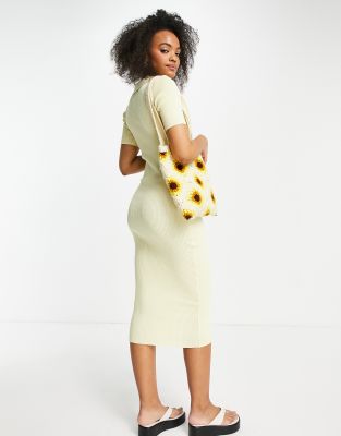 Lola May – Citrongul, stickad midiklänning med krage