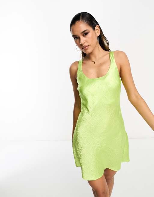 Lola May – Grön miniklänning i krinklad satin med djup halsringning