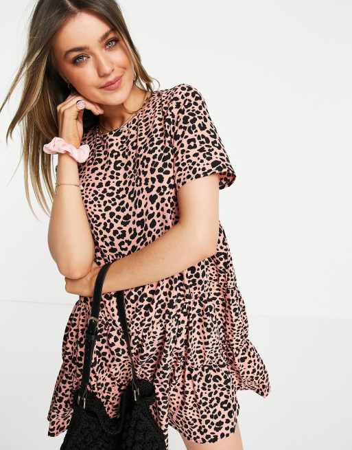 Lola May – Leopardmönstrad, panelsydd klänning i minilängd