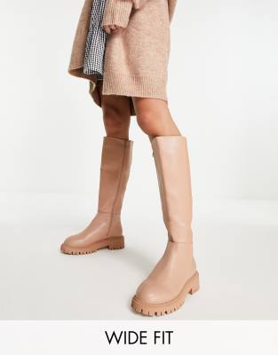 London Rebel – Beige grova knähöga boots i dra på-modell med bred passform