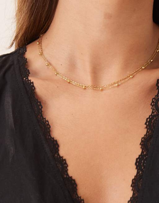 Lost Souls – 18k guldpläterat halsband i rostfritt stål med flera rader och kulkedja