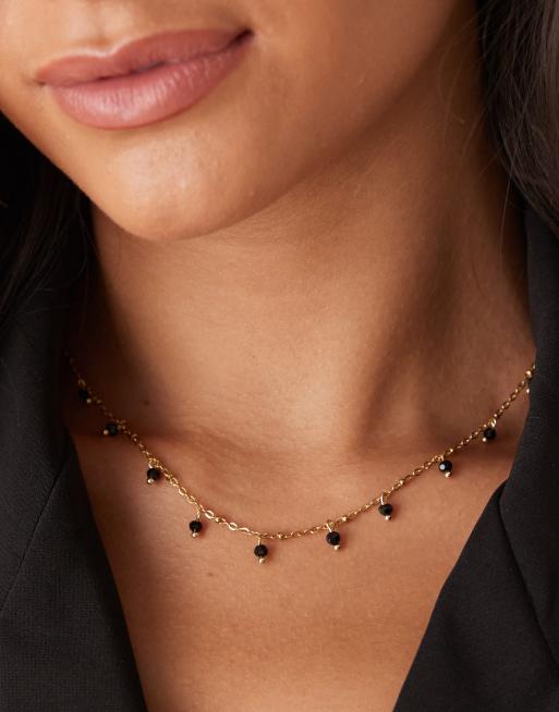 Lost Souls – 18k guldpläterat halsband i rostfritt stål med svarta stenhängen
