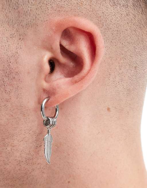 Lost Souls – Silverfärgad singelcreol i rostfritt stål med fjäderhänge