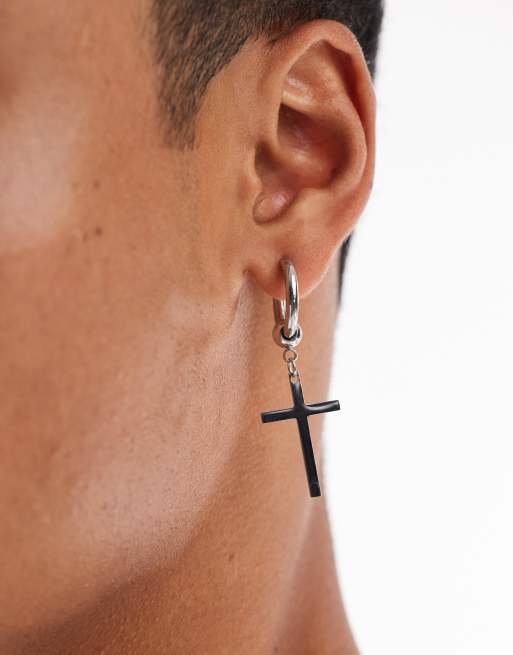 Lost Souls – Små creoler i rostfritt stål med korshängen
