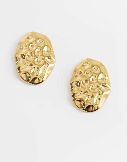 Lost Souls – Stora, hamrade, ovala örhängen i rostfritt stål med 18k guldplätering