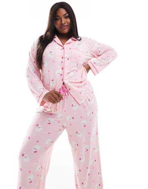 Loungeable Curve – Jul – Rosa och röd, tomtemönstrad pyjamas i jersey