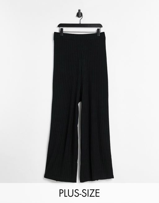 Loungeable Curve – Mixa & matcha – Svarta mjukt ribbstickade byxor med vida ben