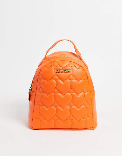 Love Moschino – Orange kviltad ryggsäck med hjärtmönster