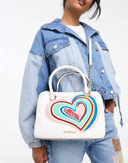 Love Moschino – Vit axelremsväska med kedja och graffitihjärta