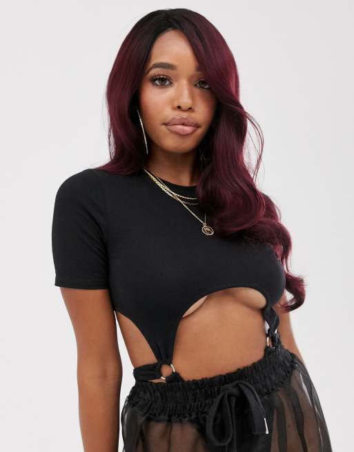 Lullabellz – The RiRi – Röd lång peruk med lockar och nätkant framtill