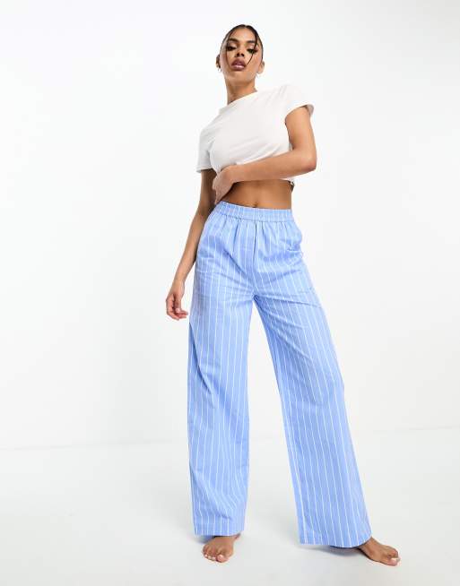 Luna – Blårandig pyjamasbyxor i oversize med vida ben av bomull