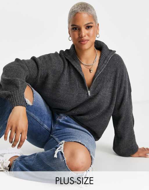 M Lounge Curve – Gråmelerad tröja med ståkrage och halv dragkedja