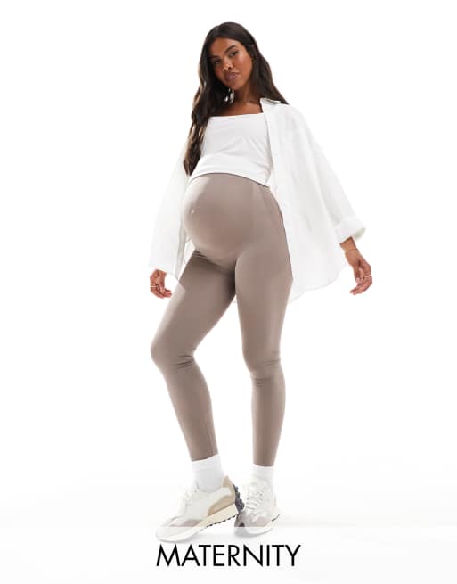 Mamalicious – Mammakläder – Brungrå leggings i seamless design