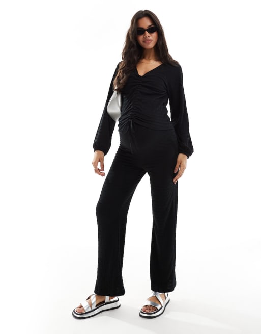 Mamalicious – Mammakläder – Rynkat set i jersey med topp och byxor med mudd över magen och vida ben