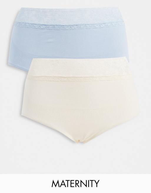 Mama.Licious Maternity – 2 Ljusblå och ljusrosa trosor med hög midja och spetsdetaljer