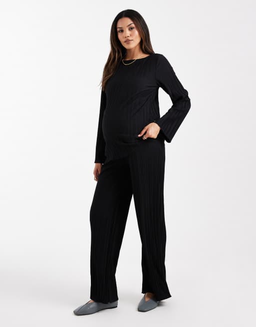 Mamalicious Maternity – Svarta, plisserade byxor med vida ben, del av set