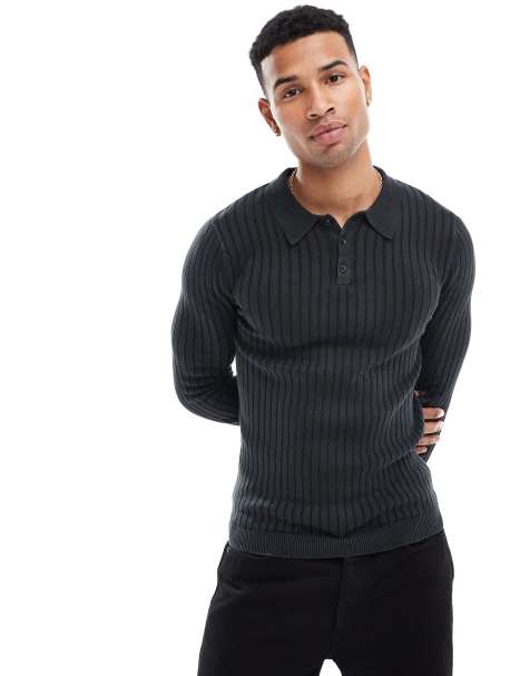 ASOS DESIGN – Svart, superkraftig pikétröja med kort dragkedja