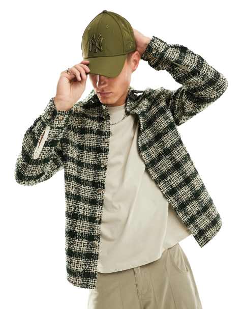 ASOS DESIGN – Grönrutig overshirt i bouclé