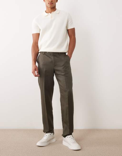 Mango – Amalfi – Kakifärgade kostymbyxor i 100% linne med smal passform, del av set