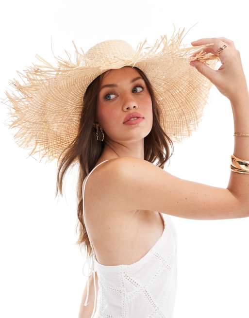Mango – Beige hatt med brett brätte i strå