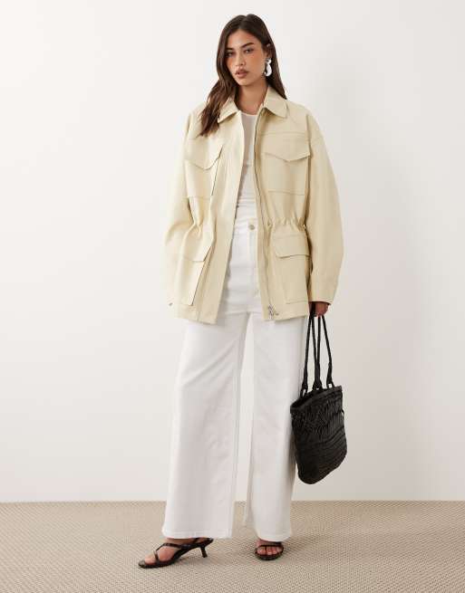 Mango – Beige parkas med indragen midja