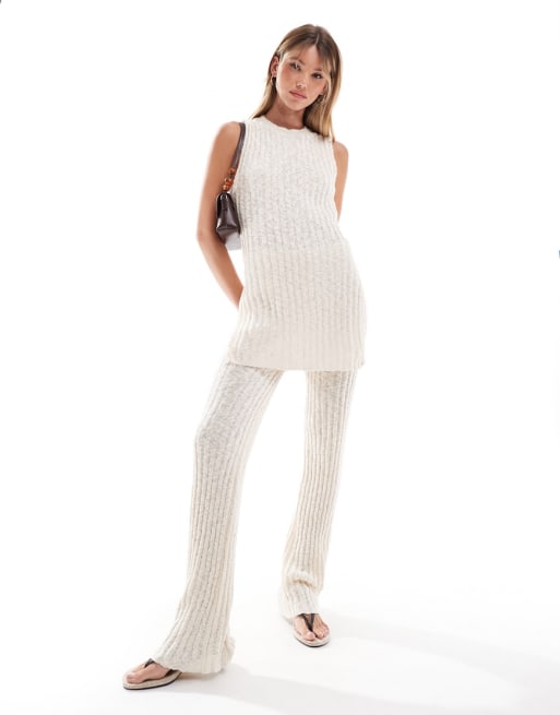 Mango – Beige, stickat set med ärmlös topp och byxor