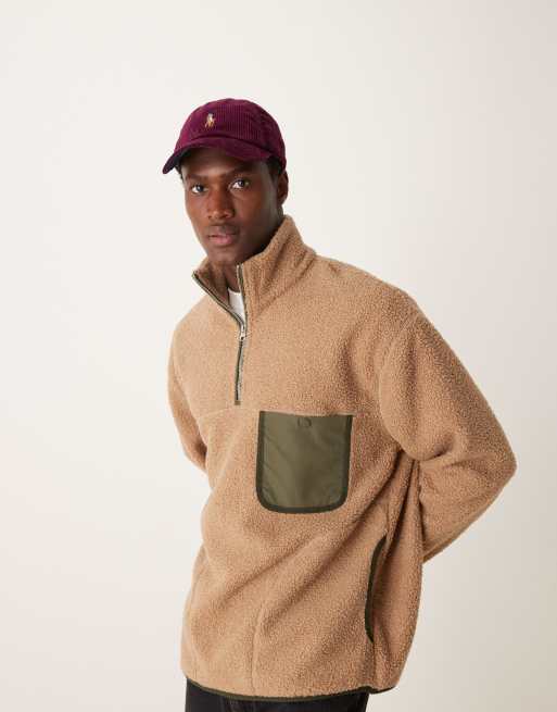 Mango – Beige tröja med kvartslång dragkedja och kontasterande detaljer